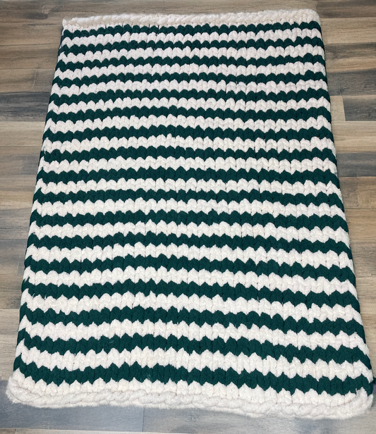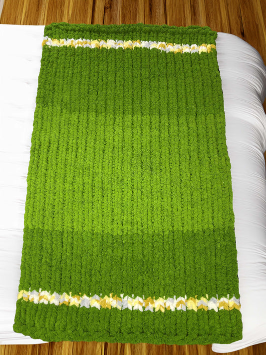 Handmade chunky chenille yarn blanket - Beige & Dark Green color