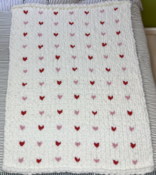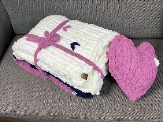 Handmade chunky chenille yarn hearts blanket & pillows set