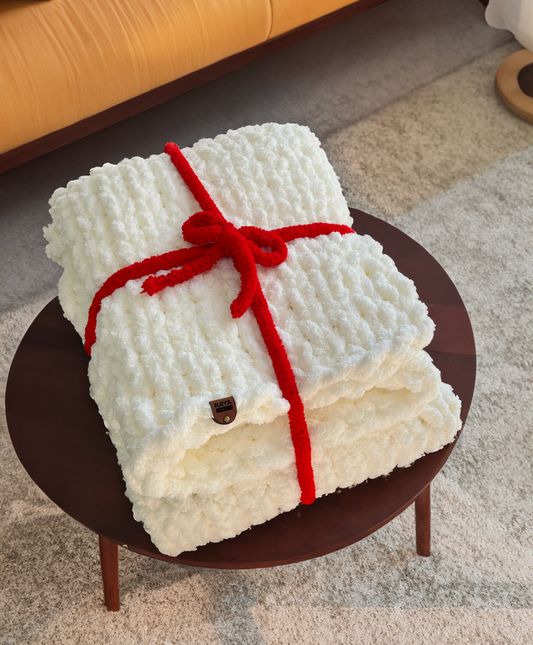 Handmade Christmas soft chunky chenille blanket. Supreme coziness.