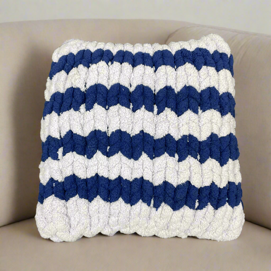 Handmade chunky chenille yarn blanket & pillow set - Purple & Navy