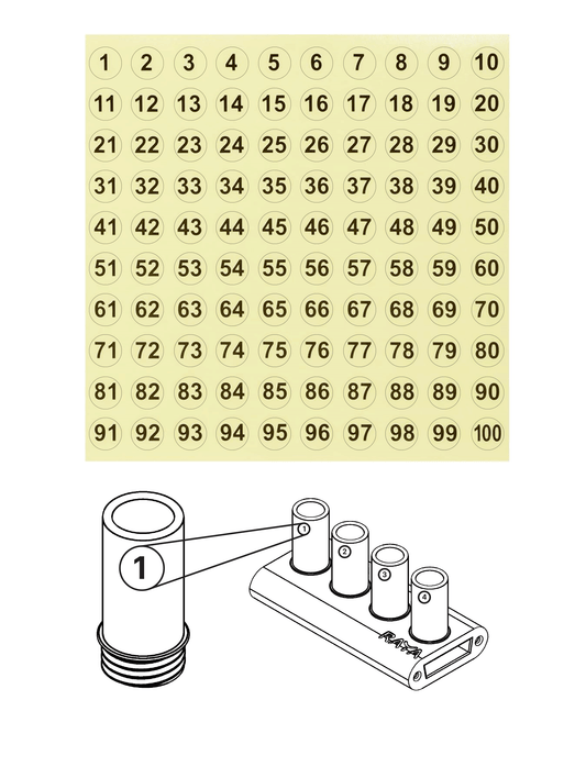 ADD-ONS: 5 Pieces of PegMark (+ 1 sheet of Self-Adhesive numbers labels 1 - 100 Clear ) - for Pattern or design tracking